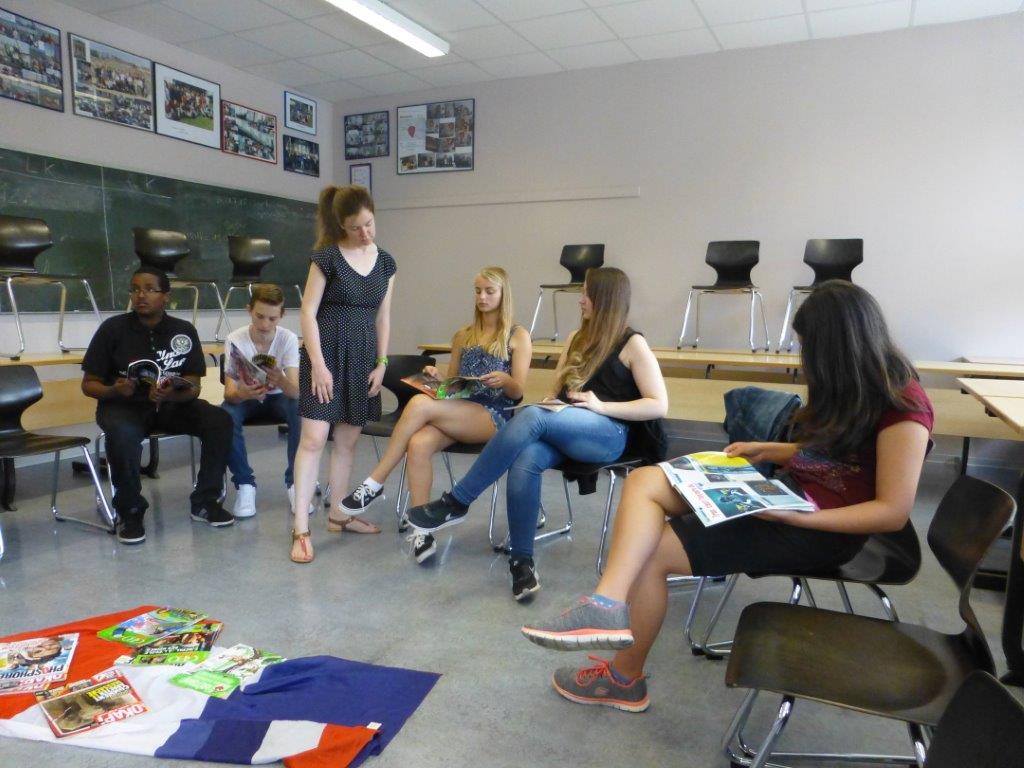 Anfangs eher zögerlich gegenüber der Muttersprachlerin, trauten sich alle Schülerinnen und Schüler nach und nach immer mehr zu, dank der unbefangenen, sehr motivierenden Art von Mme Perrine Val, die einerseits ihre Heimatregion Normandie präsentierte und andererseits die Lerngruppe dazu motivierte, die durchaus vielfältigen Vorkenntnisse abzurufen.