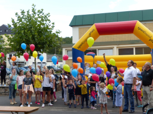 Verbunden mit den unterschiedlichen Wünschen und Hoffnungen der anwesenden Schul- und Kindergartenkinder entließen Eltern und Kinder bei dem Sommerfest des Kiwanisclub Idar-Oberstein ihre Ballons zum Weitflugwettbewerb in den sommerlichen Himmel, der sich den Besuchern dieser Veranstaltung auf dem Gelände der Ida-Purper-Schule darbot.