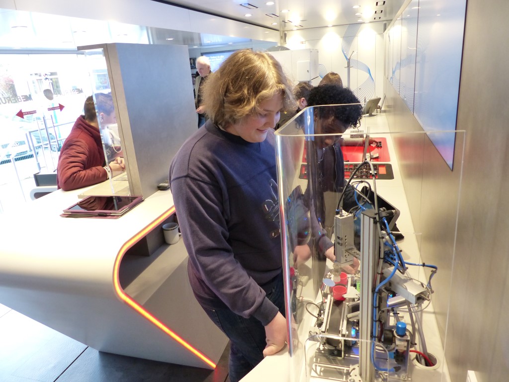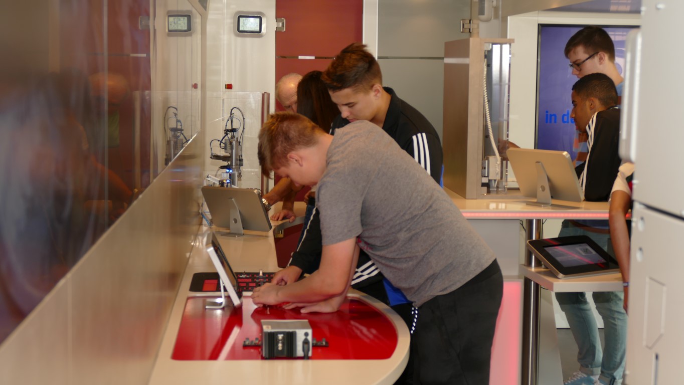 Auf Grund unserer positiven Erfahrung der letzten Jahre mit dem Arbeitgeberverband Gesamtmetall hatten unsere Schülerinnen und Schüler nunmehr auf zwei Etagen die Gelegenheit, an praktischen Arbeitsplätzen verschiedene Berufsbilder der Metall- und Elektroindustrie kennenzulernen und somit an die jeweiligen Unterrichtinhalte anzuknüpfen.