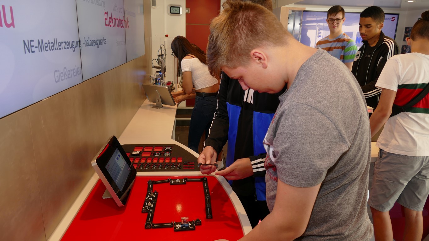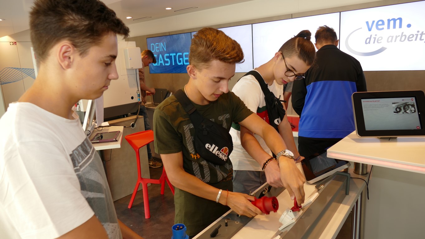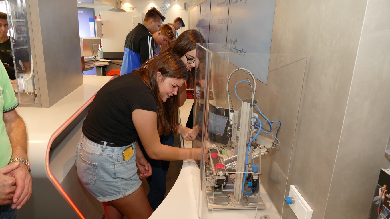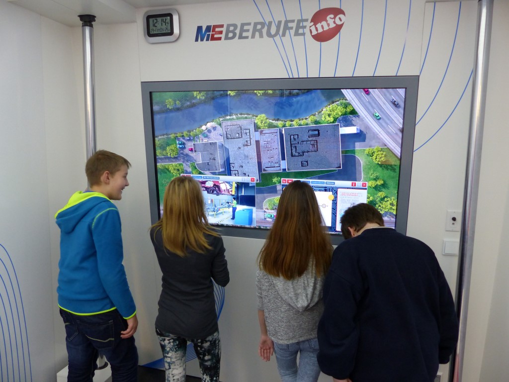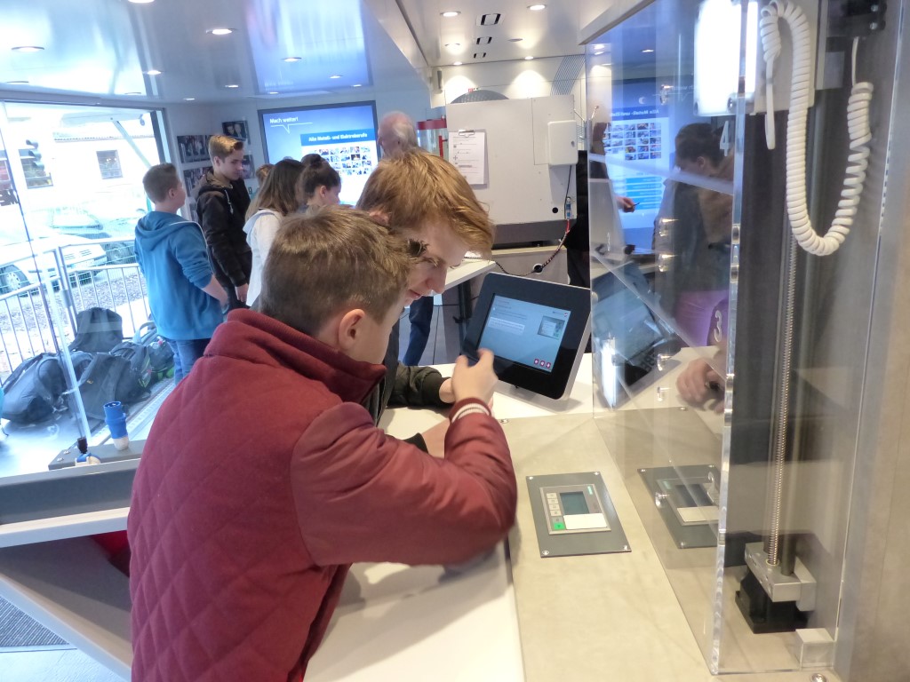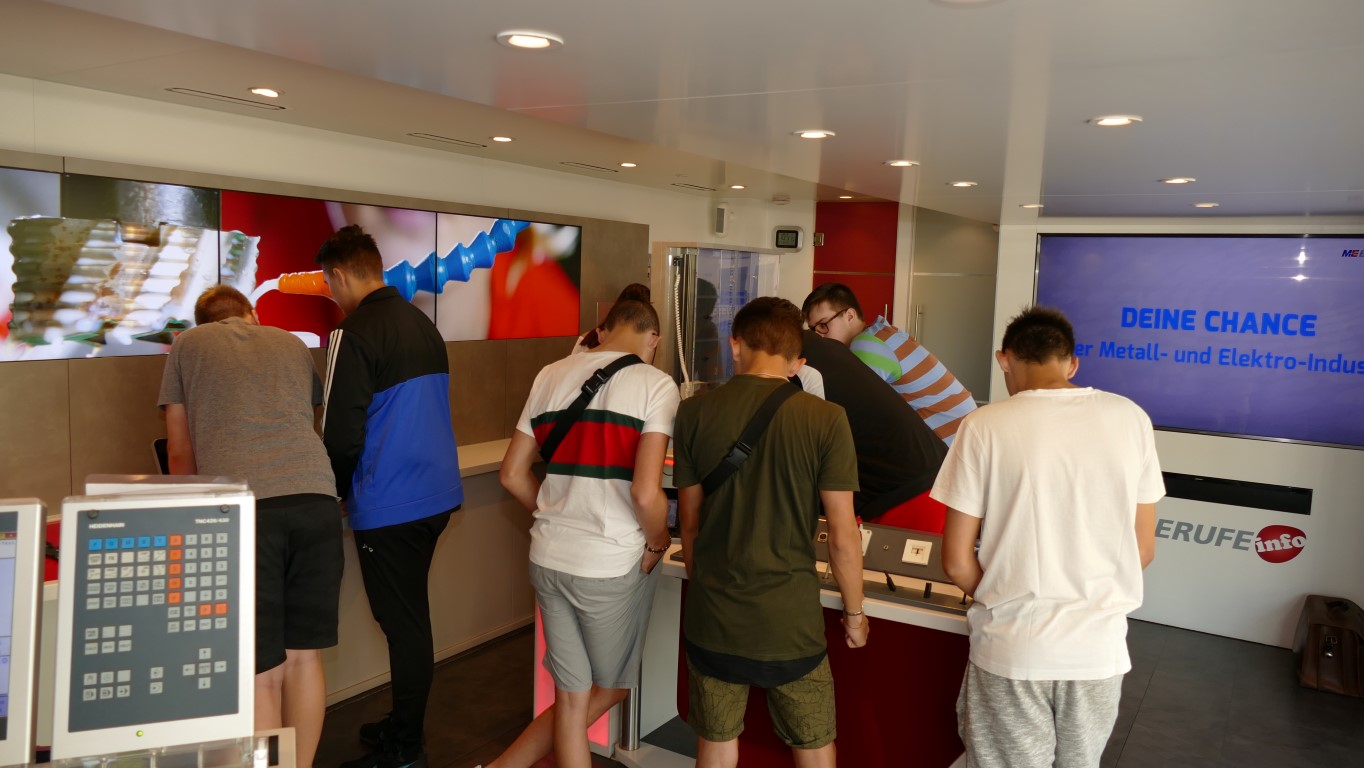 Die Schülerinnen und Schüler erlebten Arbeitsabläufe und Anforderungen von Ausbildungsberufen. Sie konnten erfahren, welche Bewerbungsstrategien den Einstieg ins Berufsleben erleichtern. Speziell an metall- und elektrotypischen Arbeitsplätzen konnten sie unter anderem erfahren, wie eine computergesteuerte CNC-Fräse programmiert werden muss, um ein Werkstück zu fräsen, oder aber auch wie vielfältig ein Wechselschalter in elektronischen Schaltungen eingesetzt werden kann. Modernste Multimedia-Anwendungen luden die Schülerinnen und Schüler auf eine virtuelle Reise durch die Metall- und Elektroindustrie ein.