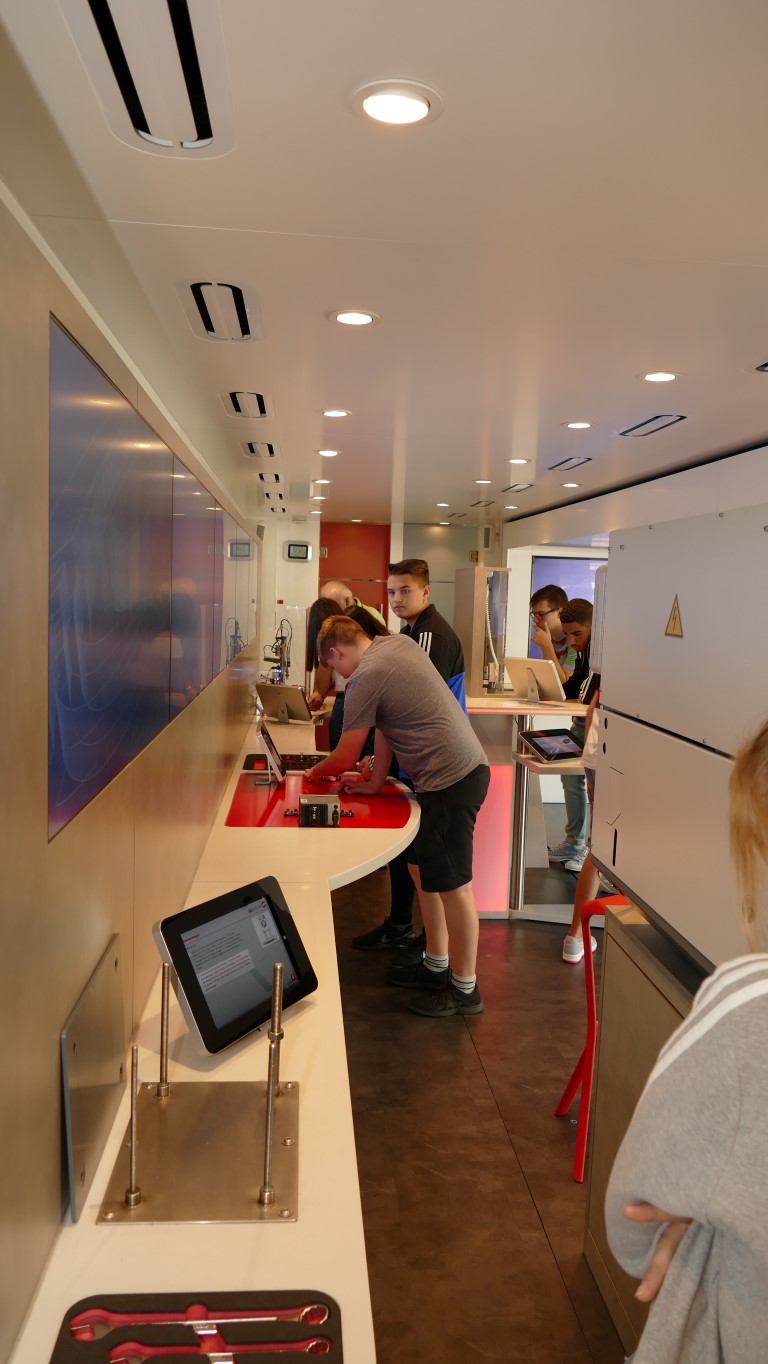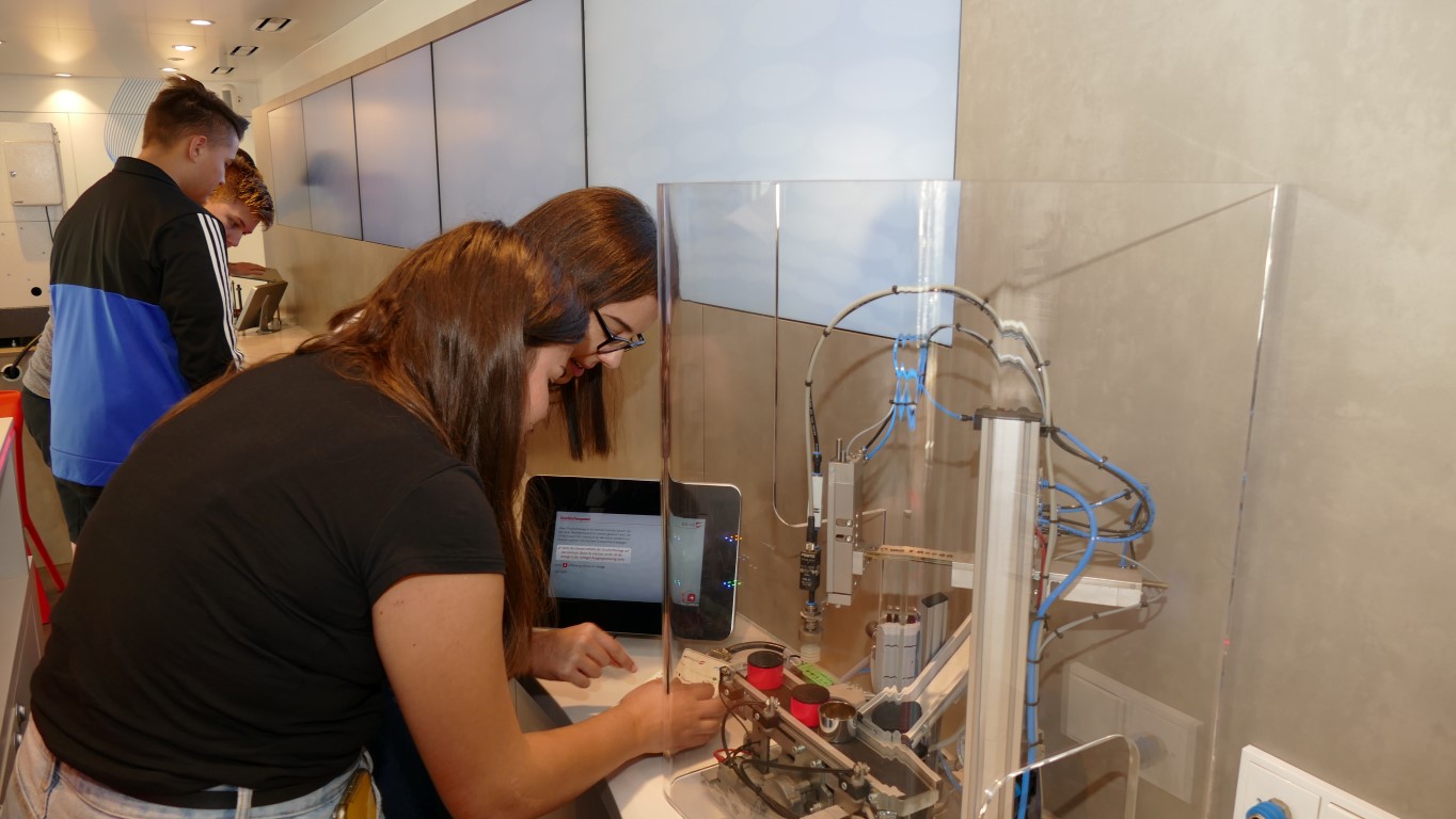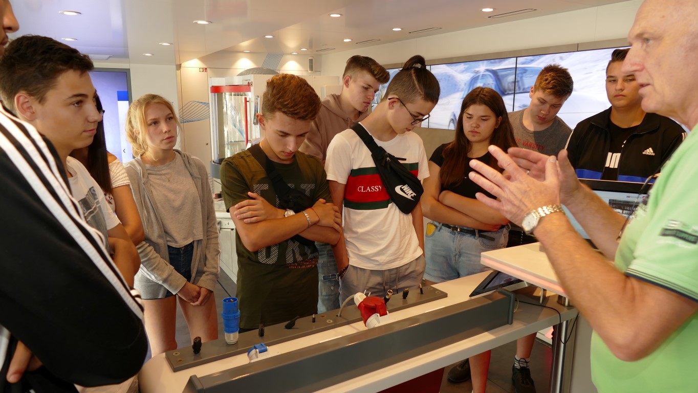 Im Rahmen der Berufsorientierung der Ida-Purper-Schule hatten die Schülerinnen und Schüler des Wahlpflichtfachbereichs Technik und Naturwissenschaften die Gelegenheit, in einem großzügig ausgestatteten Metall- und Elektro Info-Truck erlebnisorientiert über die Ausbildungsmöglichkeiten und Berufsbilder in der Metall- und Elektroindustrie informiert zu werden. Hierbei erlebten die Jugendlichen an anschaulichen Experimentierstationen die Faszination Technik praxisnah und intuitiv.