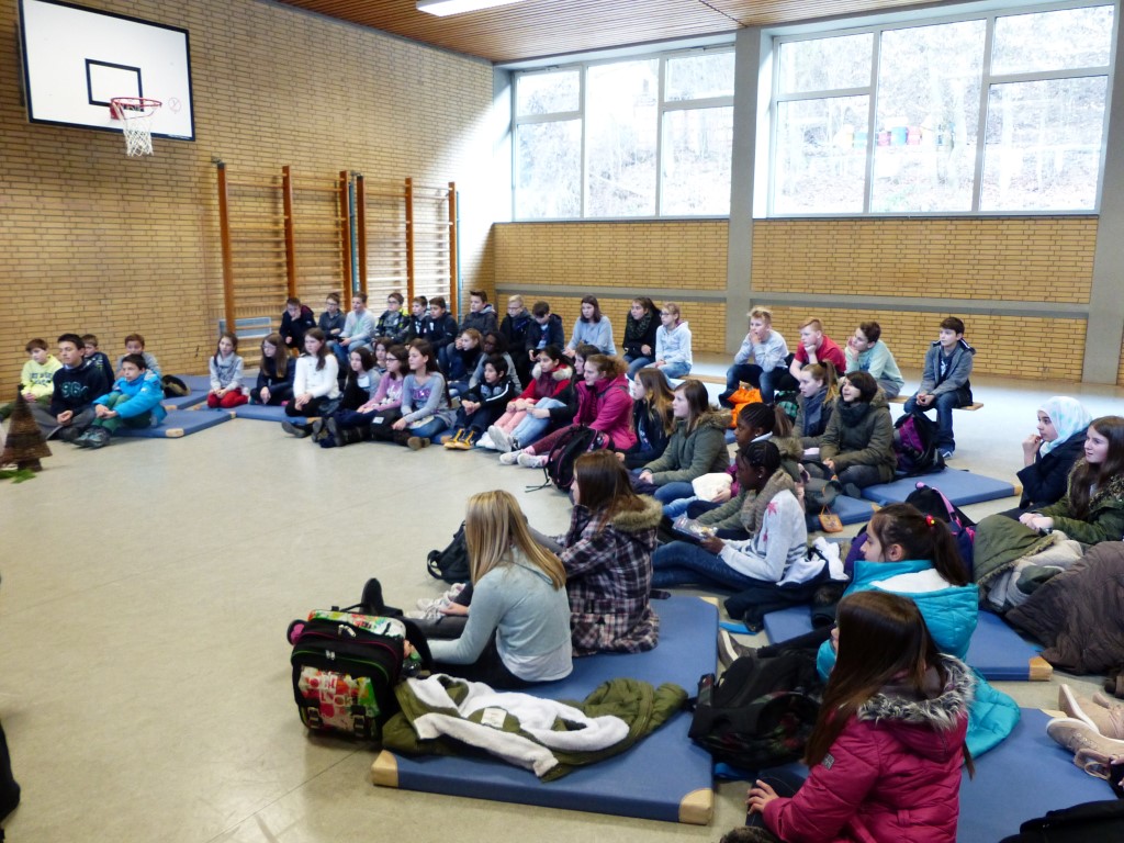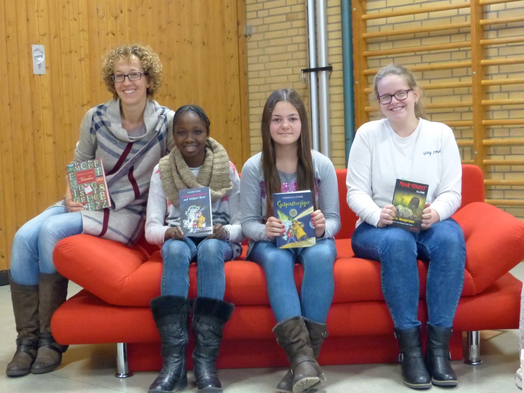 In weihnachtlich besinnlicher Atmosphäre nahmen Anna-Lena Schöfferle, 6a, Aichatou Diombera, 6b und Tabea Armbrüster, 6c, Schülerinnen der Klassenstufe 6, ihre Klassenkameraden mit auf eine literarische Reise in die Welt von Gespensterjägern und Mutproben. Zuvor überzeugten die 3 in ihrer eigenen Klasse als Klassensieger. Alle anderen 6.-Klässler lauschten am 8. Dezember 2016 interessiert den 3 Vorleserinnen, die zuvor eine kurze Zusammenfassung ihrer eigens ausgewählten Bücher vorstellten. Das waren „Die Mutprobe“ von R.L. Stine und zwei Mal „Gespensterjäger“ von Cornelia Funke.