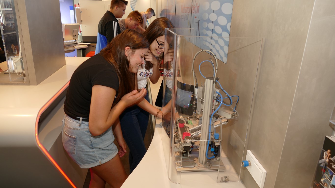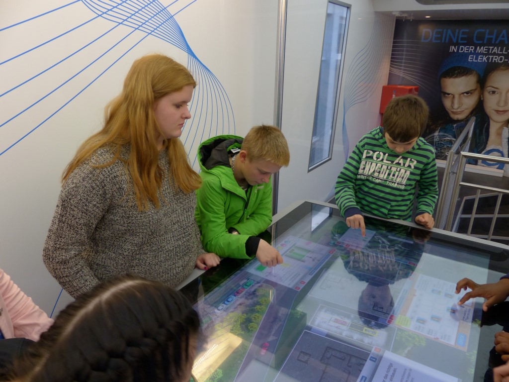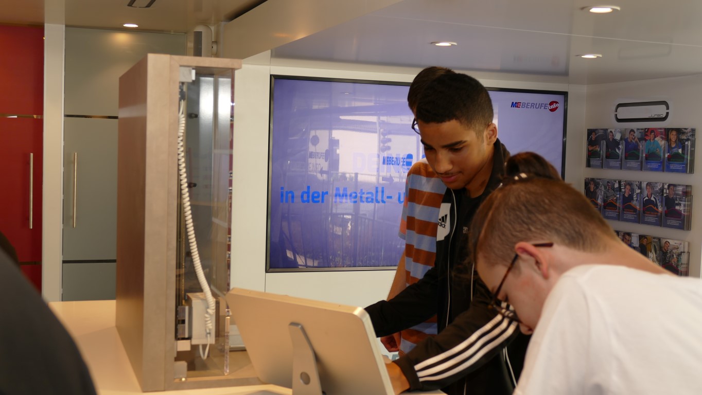 Die Schülerinnen und Schüler erlebten Arbeitsabläufe und Anforderungen von Ausbildungsberufen. Sie konnten erfahren, welche Bewerbungsstrategien den Einstieg ins Berufsleben erleichtern. Speziell an metall- und elektrotypischen Arbeitsplätzen konnten sie unter anderem erfahren, wie eine computergesteuerte CNC-Fräse programmiert werden muss, um ein Werkstück zu fräsen, oder aber auch wie vielfältig ein Wechselschalter in elektronischen Schaltungen eingesetzt werden kann. Modernste Multimedia-Anwendungen luden die Schülerinnen und Schüler auf eine virtuelle Reise durch die Metall- und Elektroindustrie ein.