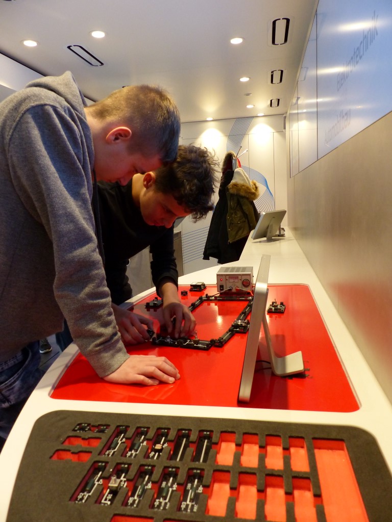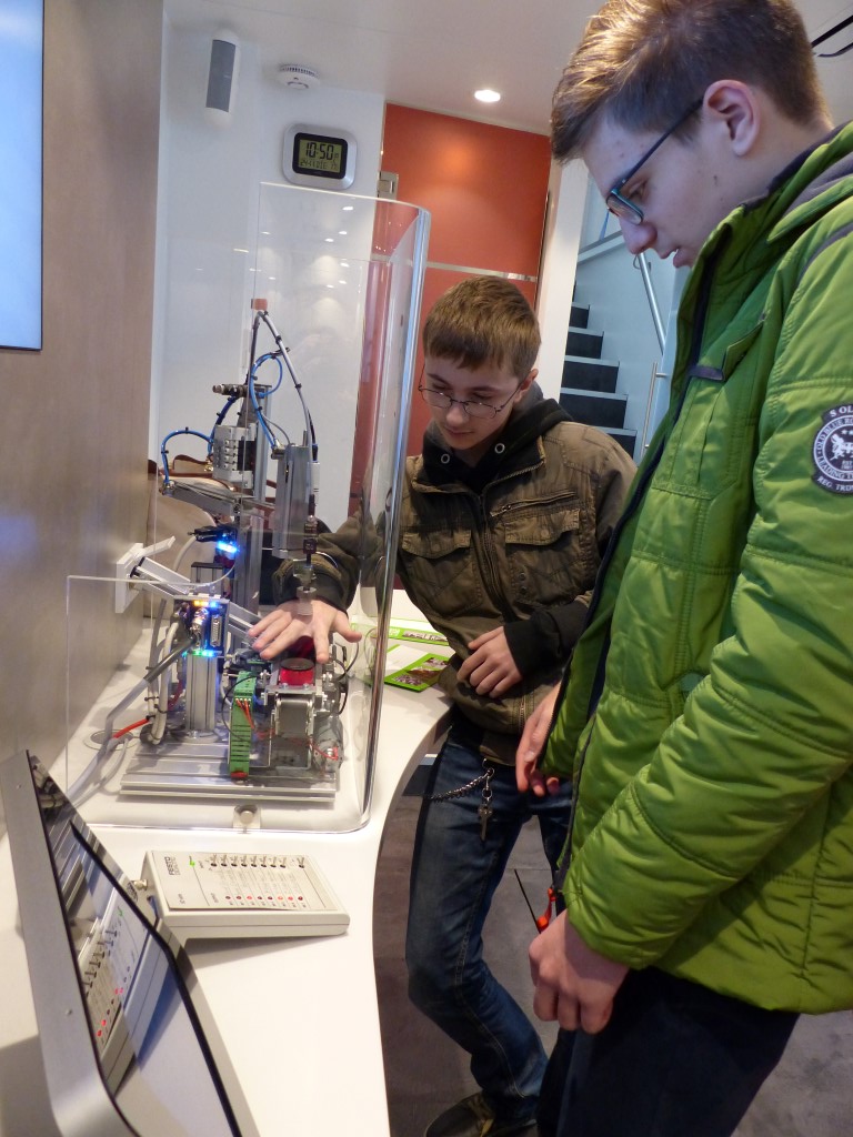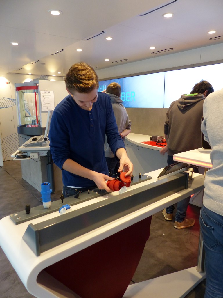 Auf Grund unserer positiven Erfahrung der letzten Jahre mit dem Arbeitgeberverband Gesamtmetall hatten unsere Schülerinnen und Schüler nunmehr auf zwei Etagen die Gelegenheit, an praktischen Arbeitsplätzen verschiedene Berufsbilder der Metall- und Elektroindustrie kennenzulernen und somit an die jeweiligen Unterrichtinhalte anzuknüpfen.
