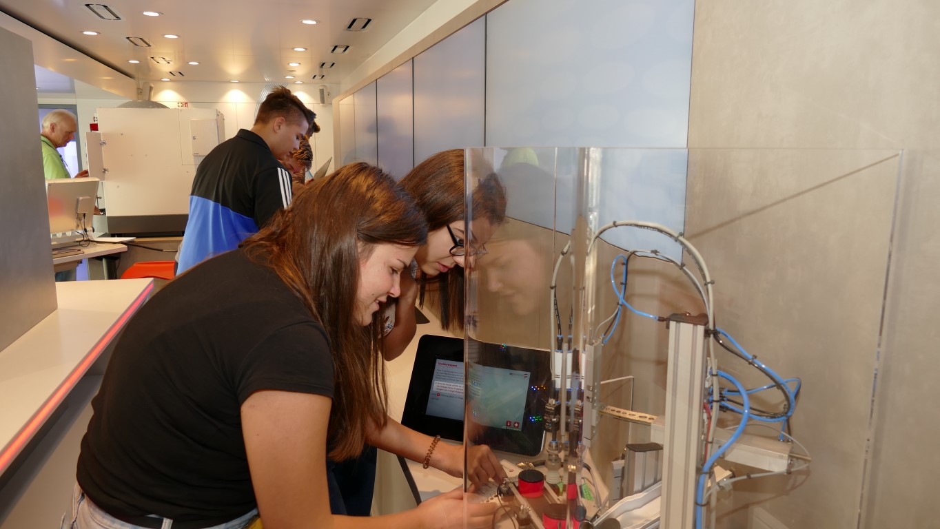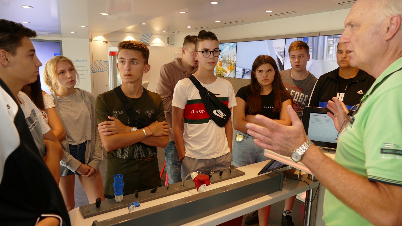 Im Rahmen der Berufsorientierung der Ida-Purper-Schule hatten die Schülerinnen und Schüler des Wahlpflichtfachbereichs Technik und Naturwissenschaften die Gelegenheit, in einem großzügig ausgestatteten Metall- und Elektro Info-Truck erlebnisorientiert über die Ausbildungsmöglichkeiten und Berufsbilder in der Metall- und Elektroindustrie informiert zu werden. Hierbei erlebten die Jugendlichen an anschaulichen Experimentierstationen die Faszination Technik praxisnah und intuitiv.